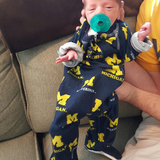 I will never forget the day when he got to combine both of his #1 passions together for the first time - Benjamin and University of Michigan football. It was only 2 days after we brought our 14 day old little light home from the NICU. The emotions that filled my heart when I captured the two of them snuggled together is indescribable, One would have to feel it themselves to truly understand the feeling. This is a spot I envisioned them spending so many future hours just being together. I am grateful I held onto this moment so tight back then because unfortunately this would be the only moment they spent doing this together.